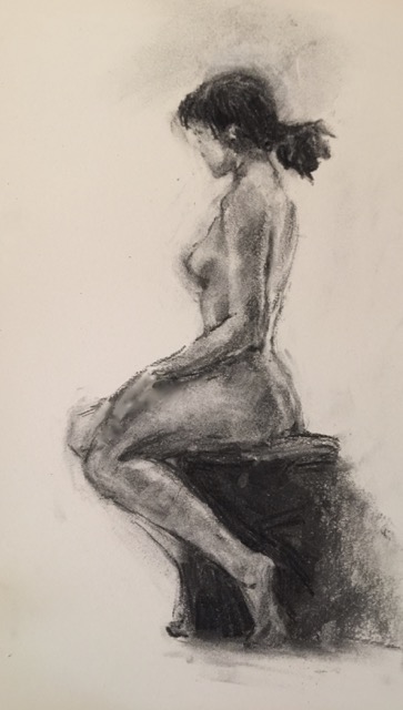 Seated Nude - charcoal drawing of a nude model
