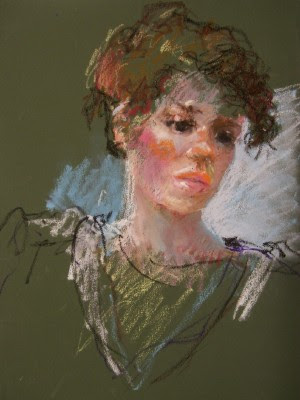 This drawing, which I will complete early next week, is oil pastel on Colourfix paper, 12 x 9". Maybe I'll post it when it's finished. This young girl wanted to wear her cap, but I felt it shaded her face too much, so I had her turn it a little. I don't know if this will work. At this stage, though, things can be changed.