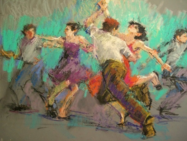 Jitterbugs All Over Again - original oil pastel figurative painting of dancers