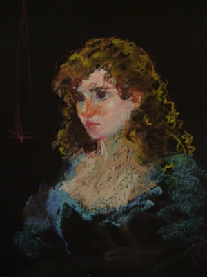 This portrait sketch was done quickly from a live model. The pose would normally be a very tough one to hold, but she rested her head lightly against the wall - which to my eyes, resulted in a charming, wistful look. Today I posted on The Oil Pastel Review another oil pastel. It's also a portrait, with the title "Sketch Chronology". I hope you will check it out!
