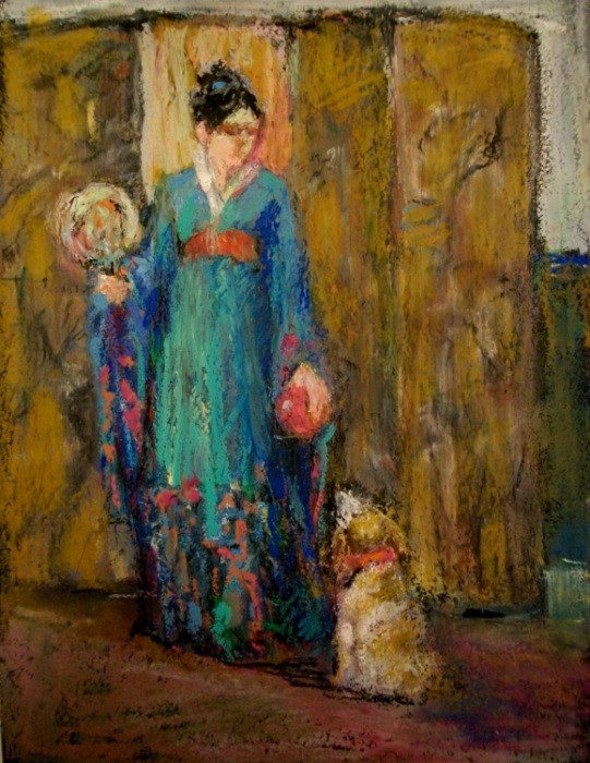 On My Easel - Two Geishas - original oil pastel figurative in progress