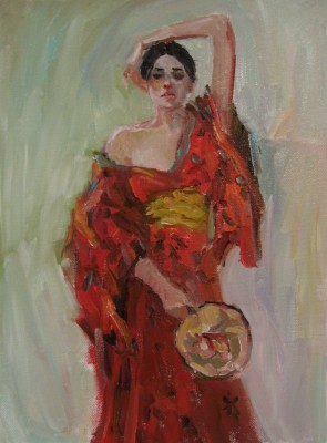 Here's another red kimono painting, this one is less 'finished' than some of the others, but the timer was set, so .....