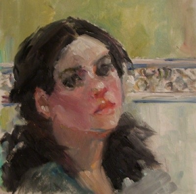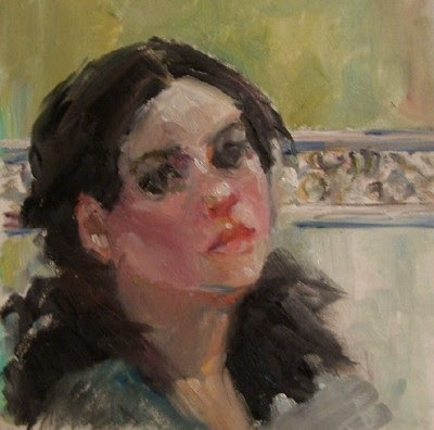 This is a quick portrait where I actually set my stop watch, so that with any luck, I wouldn't kill the painting. I used a single primed linen board. There's just something about that surface that I love - it absolutely screams for looseness.