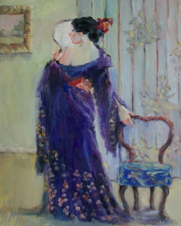 Woman with a Fan III - original oil figurative painting