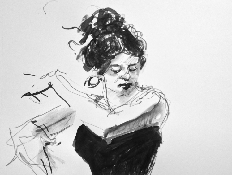 Black and White Flamenco - original ink and stick drawing of a dancer