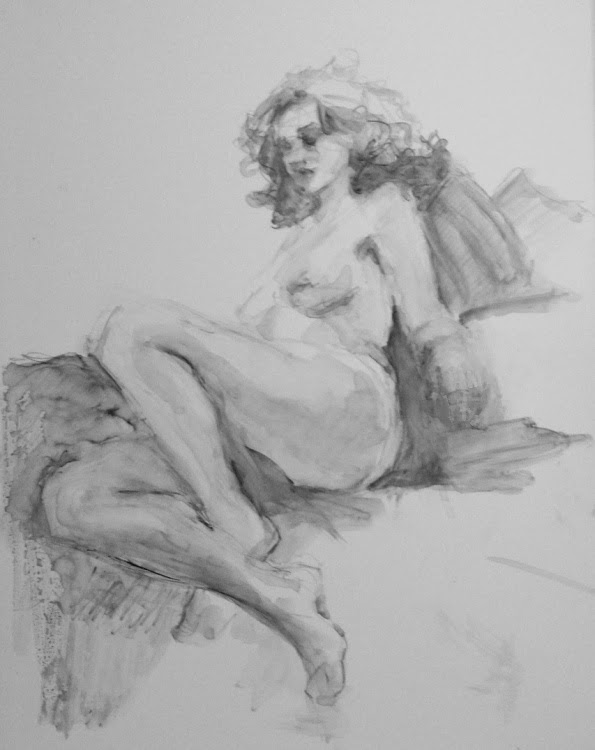 This is an interesting pose to paint and definitely requires a model - no memory painting here. It's a long way from being finished, but I look forward to working on it and seeing how it ends up. Using Strathmore Mixed Media paper - my first experience with this heavy paper and I like it. Thanks so much for stopping by!
