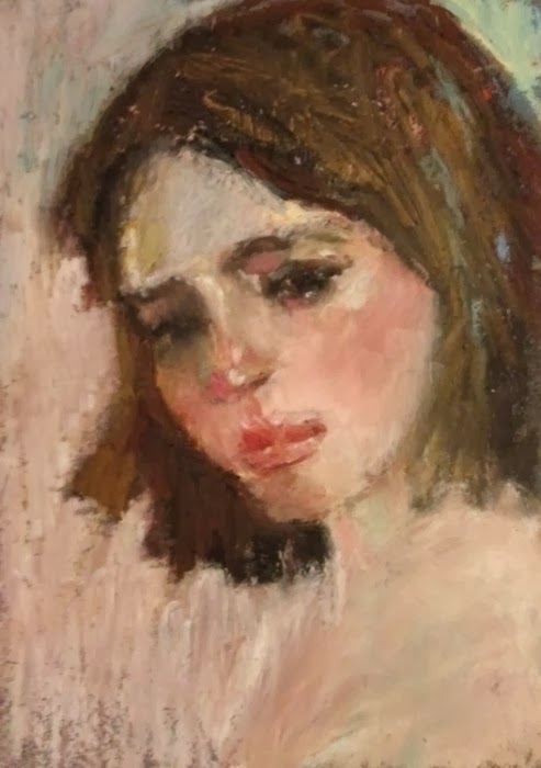 This portrait was done on Arches paper for oil paints, which is just super! I love the way it accepts the paint and is also wonderful for oil pastel. It's about 14 x 14" - I started it from life, but the model had to leave, so I finished from a photo. Although I'm a real fan of painting the live model, you do what you have to do. Thanks so much for stopping by! Sold
