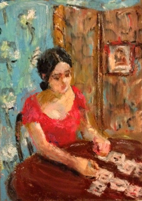 I started this sketch with watercolor, but after about three strokes, I knew it wouldn't work out, (as most of my attempts with watercolor do). So, onward with my trusty oil pastels. The support is 9 x 12" 140 pound cold press watercolor paper which worked out well - it's really a lot like Sennelier oil pastel paper. Thanks for stopping by!