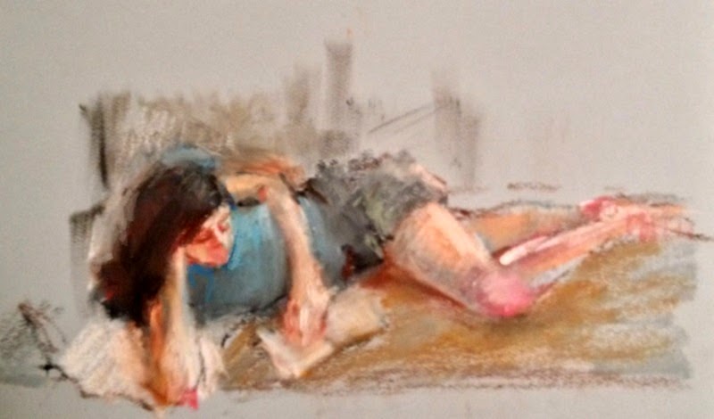 Here's a little sketch I did of a girl engrossed in her book - not the required reading during school terms. The joy of summer - I remember it well! This is oil pastel on 9 x 12" Strathmore 403 paper. Thanks so much for visiting my blog!
