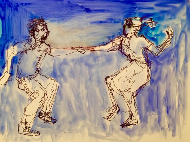 Blue Jivers Again - original ink and watercolor figurative drawing